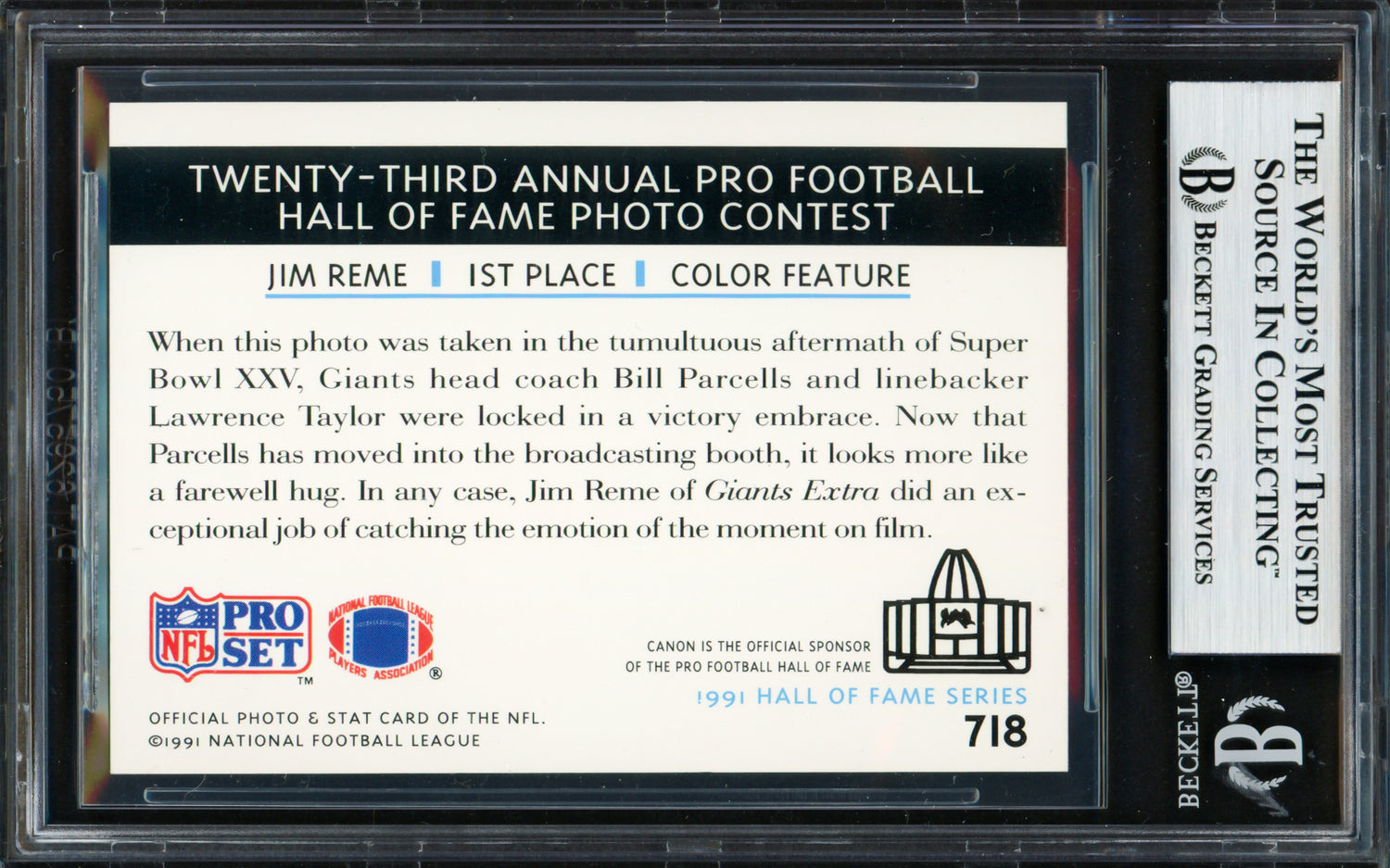Bill Parcells & Lawrence Taylor Autographed 1991 Pro Set Card #718 New York Giants Beckett BAS #19209389