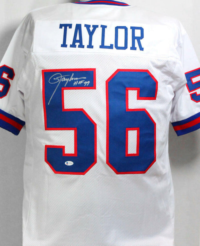 Lawrence Taylor Autographed White Pro Style Jersey w/HOF- Beckett W *Silver *5 is backordered and will ship as soon as it is back in stock.