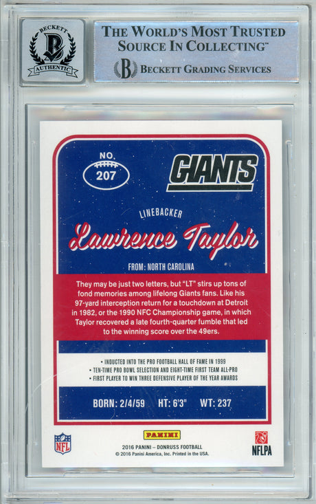 2016 Panini Donruss #207 Lawrence Taylor New York Giants BGS Autograph 10