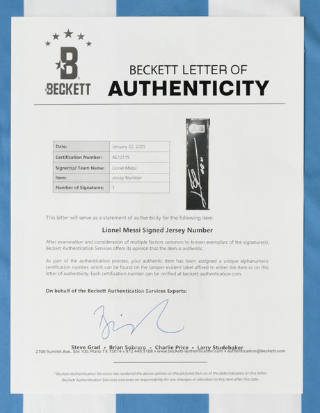 Yes. Every Lionel Messi signed item at Pristine Marketplace is authenticated through Pristine Authentic and our network of six industry-leading authentication partners, including PSA, JSA, and Beckett. Each item comes with a Certificate of Authenticity and tamper-evident hologram to verify its legitimacy.