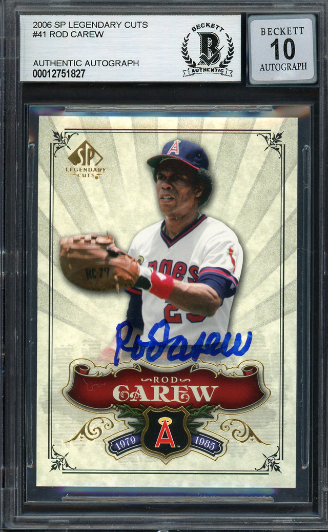 Rod Carew Autographed 2006 SP Legendary Cuts Card #41 California Angels Auto Grade Gem Mint 10 Beckett BAS Stock #192754