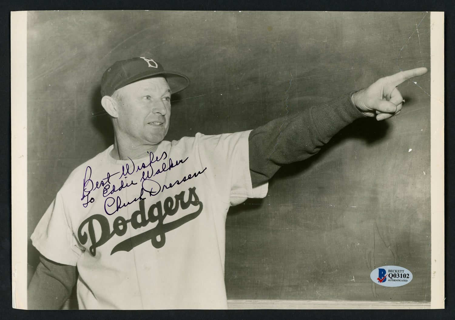Chuck Dressen Autographed 7x10 Photo Brooklyn Dodgers "To Eddie Best Wishes" Beckett BAS #Q03102