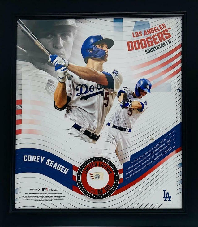 COREY SEAGER Dodgers Framed 15" x 17" Game Used Baseball Display LE 50/50