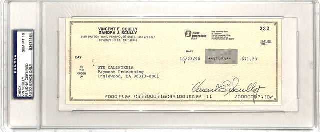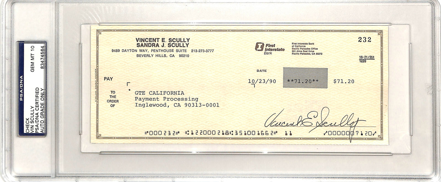 This autographed check is a must-have for Dodgers fans, baseball historians, and memorabilia collectors. Verify its authenticity on the Professional Sports Authenticator website and secure a tangible piece of sports broadcasting excellence today!