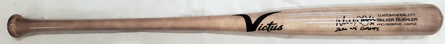 Walker Buehler Autographed Blonde Victus Game Model Bat Los Angeles Dodgers "2020 WS Champs" Beckett BAS QR Stock #193766