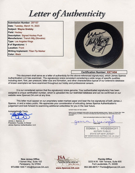 Wayne Gretzky Signed Los Angeles Kings Logo Hockey Puck - (JSA Holo & Full Letter)