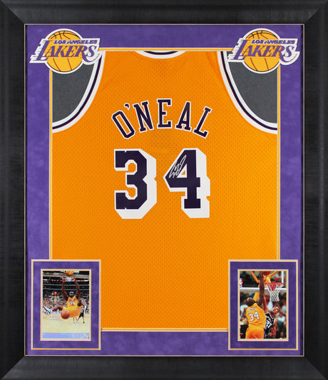 Lakers Shaquille O'Neal Signed Yellow M&N 96-97 HWC Swingman Framed Jersey BAS W
