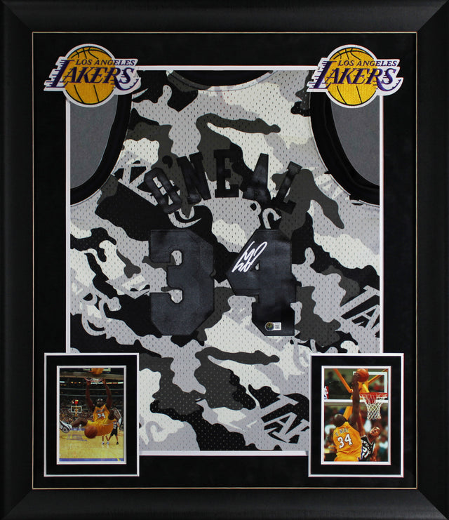 Lakers Shaquille O'Neal Signed Alt Camo M&N 96-97 HWC Swingman Framed Jersey BAS