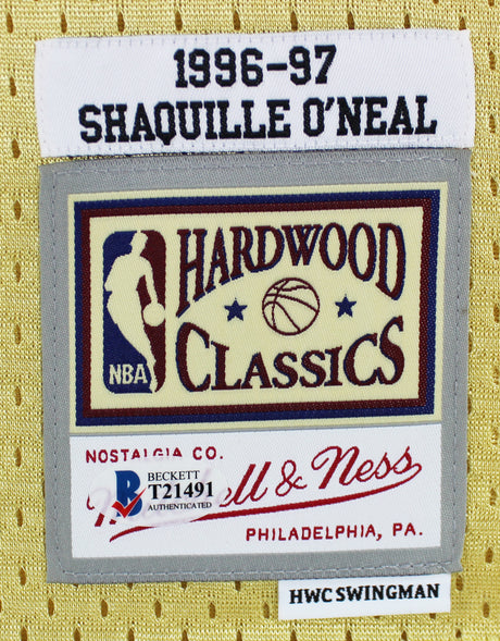 Lakers Shaquille O'Neal Authentic Signed Gold 96-97 M&N HWC Swingman Jersey BAS