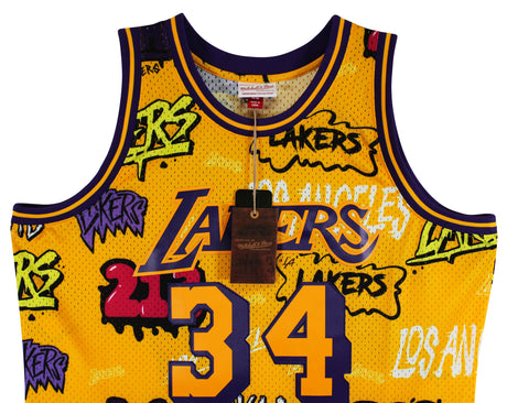 Lakers Shaquille O'Neal Signed Alt Yellow M&N 1996-97 HWC Swingman Jersey BAS W