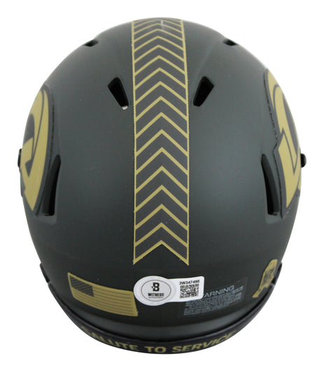 Rams Marshall Faulk Signed Salute To Service IV Speed Mini Helmet BAS Witnessed