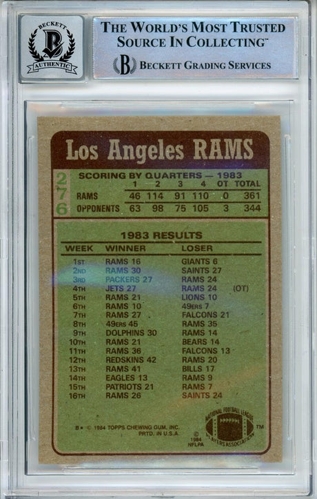 1984 Topps #281 Eric Dickerson Instant Replay Rams BGS Autograph 10