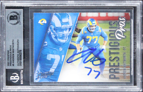Very low stock (1 unit)$149Unit price /Unavailable Rams Andrew Whitworth Signed 2021 Prestige Prestigious Pros #5 Card BAS Slabbed