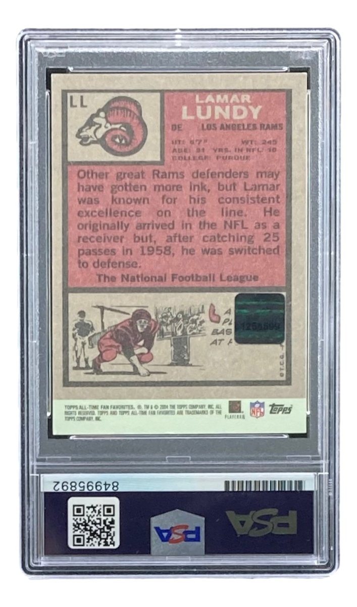 Lamar Lundy Signed LA Rams 2004 Topps #LL Trading Card PSA/DNA Gem MT 10 is backordered and will ship as soon as it is back in stock.