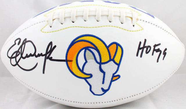Own a piece of football history with this Eric Dickerson autographed Los Angeles Rams Logo Football, inscribed with HOF 99 to commemorate his 1999 Hall of Fame induction. A must-have for Rams fans and serious collectors, this signed football celebrates the legendary career of one of the NFL's greatest running backs.