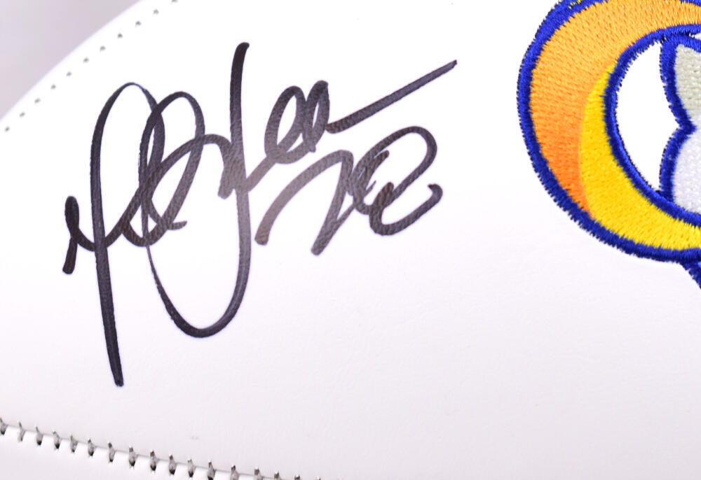 Own a piece of football history with this Marshall Faulk autographed Rams Logo Football—a must-have for Los Angeles Rams fans and sports memorabilia collectors! This officially signed football has been authenticated through Beckett Witnessed Authentication, ensuring its legitimacy and value.