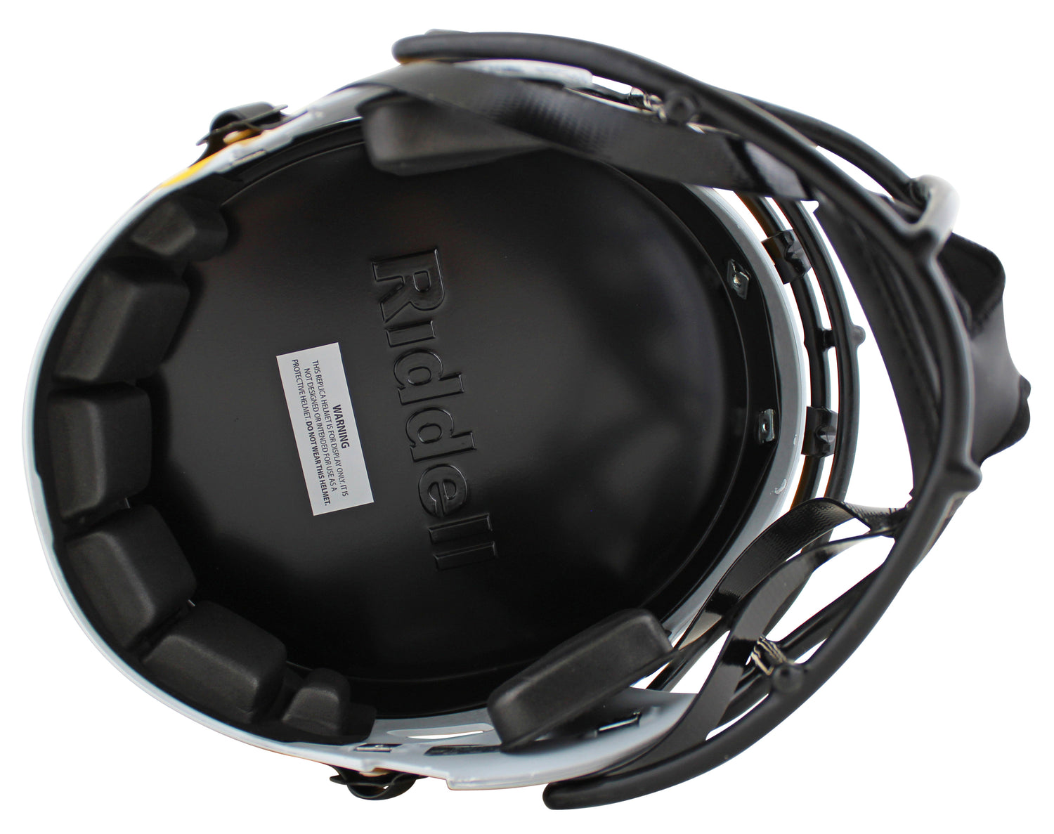Own a piece of Los Angeles Rams history with this Marshall Faulk Autographed Alternate Lunar Riddell Full-Size Speed Replica Helmet. A Hall of Fame running back and a key figure in the Rams' "Greatest Show on Turf" era, Faulk's signature adds immense collectible value to this stunning display piece.