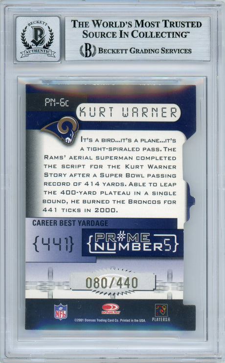 2001 Donruss Elite Prime Numbers Die Cuts #PN-6C Kurt Warner /440 Rams BGS Auto 10