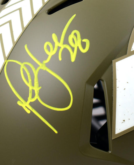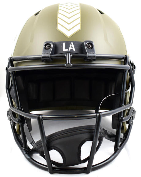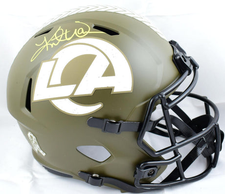 Marshall Faulk Signed F/S Rams Salute to Service Speed Helmet - Beckett W Holo