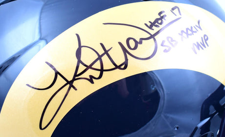 Kurt Warner Autographed Rams 81-99 F/S Speed Helmet w/SB Champs - Beckett W Holo