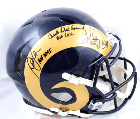 Faulk K. Warner D. Vermeil Signed F/S Rams Speed Authentic Helmet HOF- BA W Holo