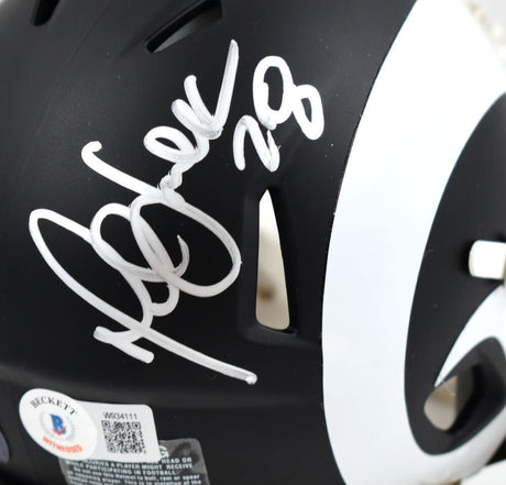 Marshall Faulk Autographed Rams Flat Black Speed Mini Helmet-Beckett W Hologram
