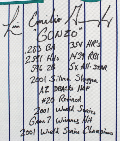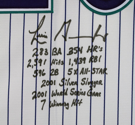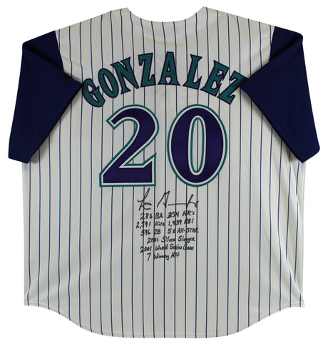 D-Backs Luis Gonzalez "Career Stat" Signed White Pinstripe Majestic Jersey BAS W