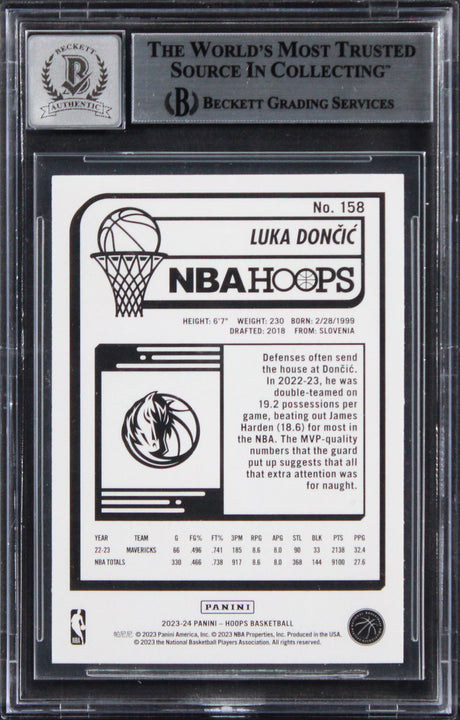 Very low stock (1 unit)$579Unit price /UnavailableMavericks Luka Doncic Signed 2023 Hoops #158 Card Auto Grade GM 10! BAS Slabbed