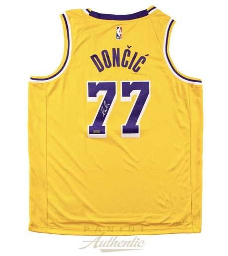 Very low stock (1 unit)$2,019Unit price /UnavailableLuka Doncic Autographed Los Angeles Lakers Gold Nike Icon Edition Swingman Jersey Panini