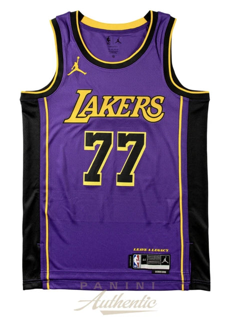 Very low stock (1 unit)$619Unit price /UnavailableLuka Doncic Autographed Los Angeles Lakers Purple Nike Statement Edition Swingman Jersey Panini