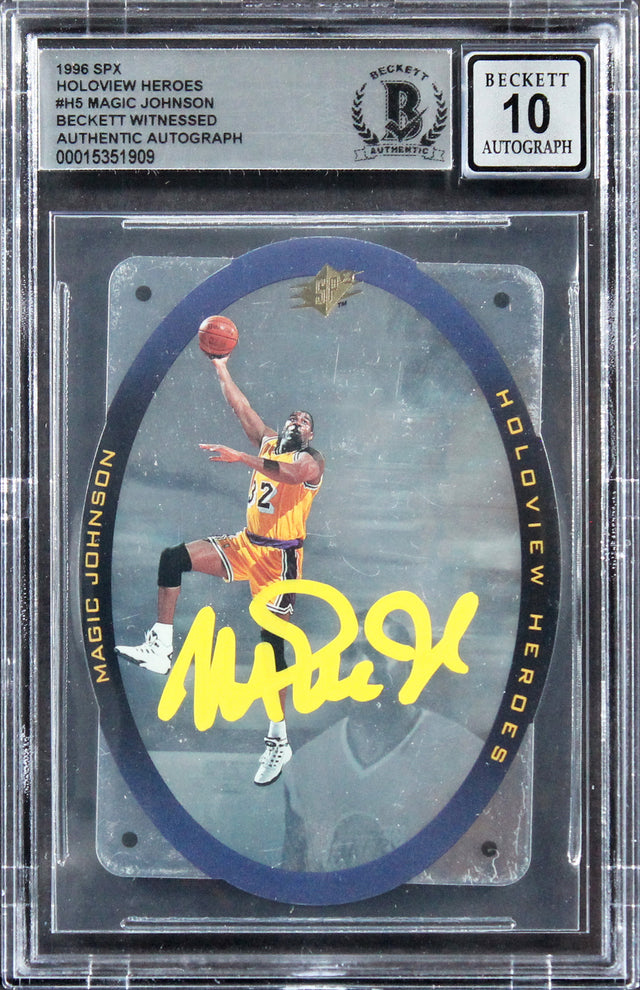Lakers Magic Johnson Signed 1996 SPX Holoview Heroes #H5 Card Auto 10! BAS Slab is backordered and will ship as soon as it is back in stock.