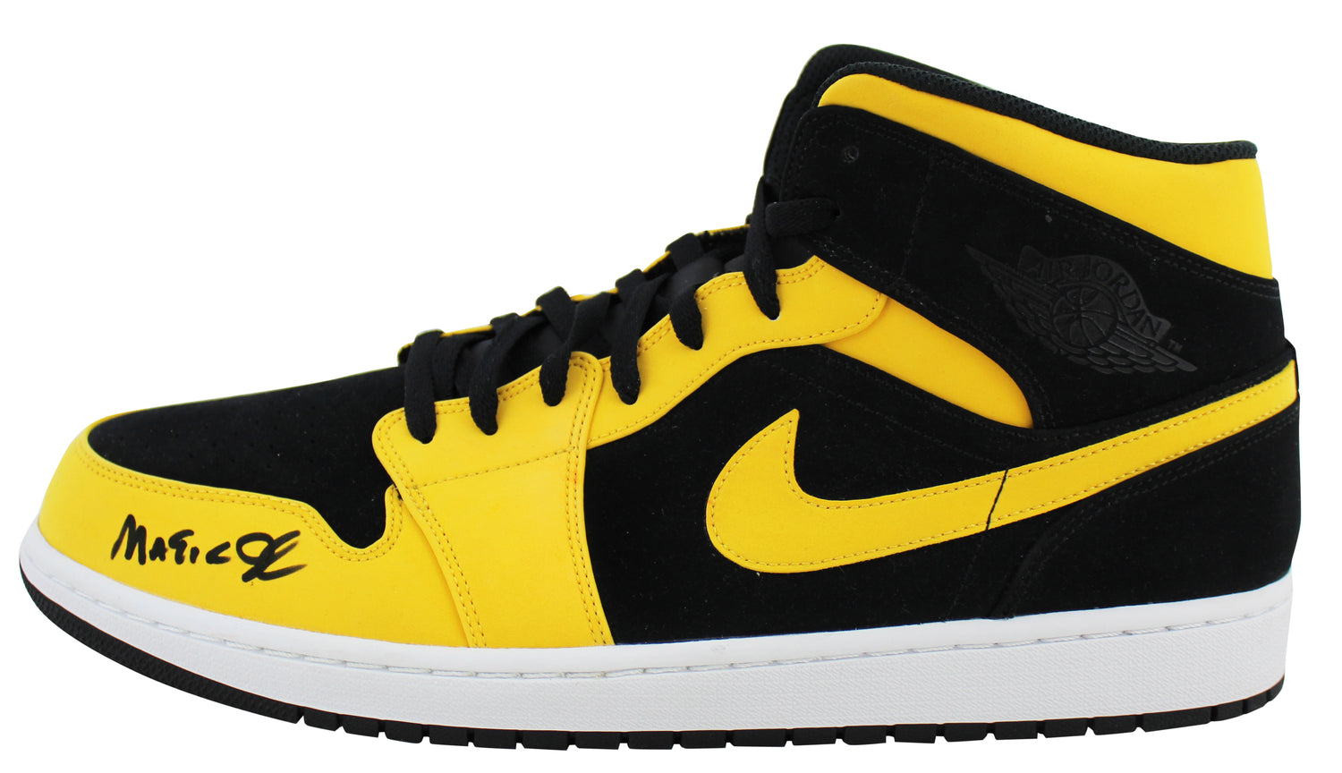 Own a piece of basketball history with these Autographed 2018 Nike Air Jordan 1 Mid Size 15 Shoes, personally signed by Magic Johnson — one of the greatest players in Los Angeles Lakers history. As a Beckett Authentication Services (BAS) Witnessed Protection Program item, the authenticity of this signature is 100% verified, with a Certificate of Authenticity (COA) and official hologram included.