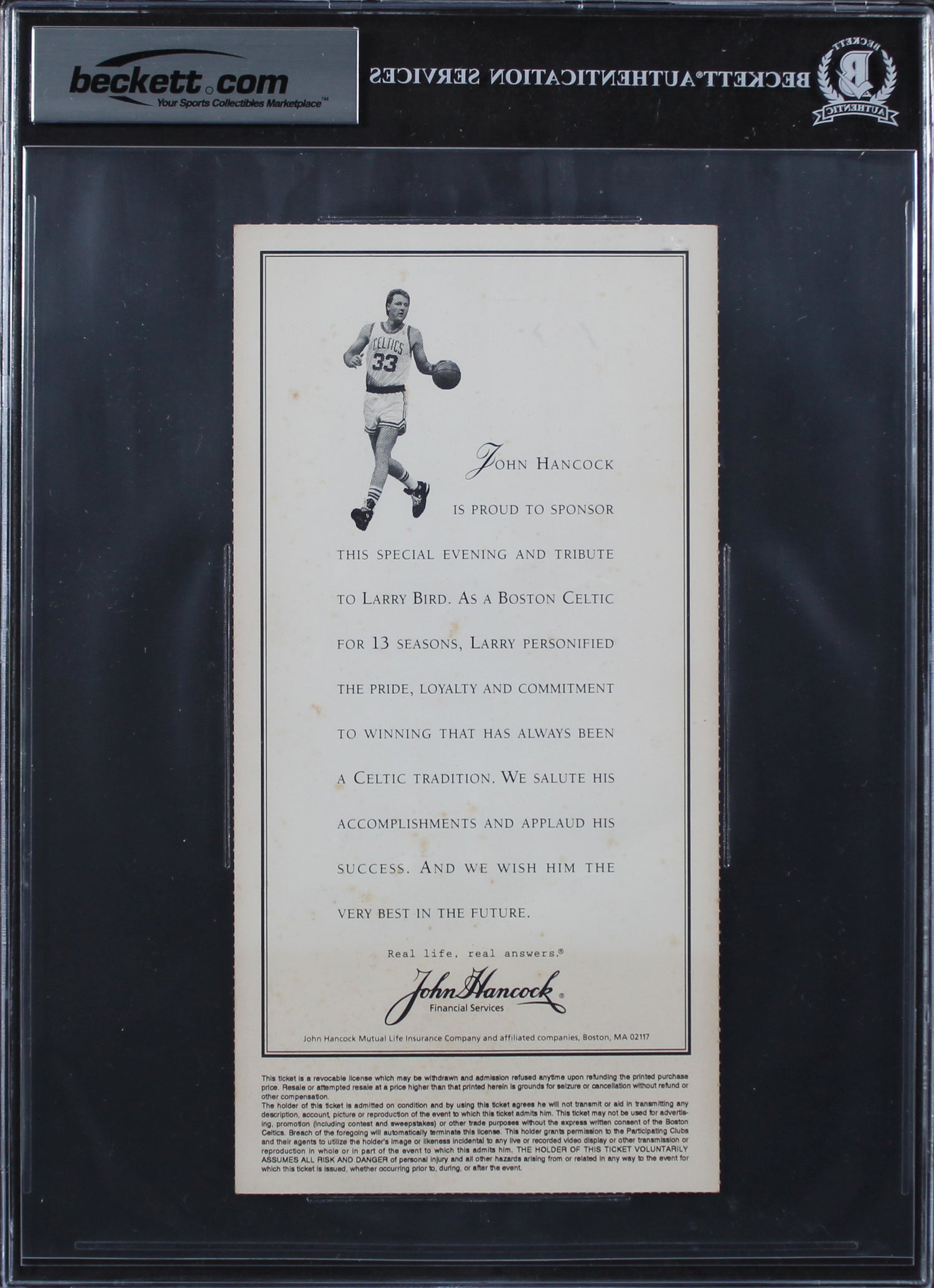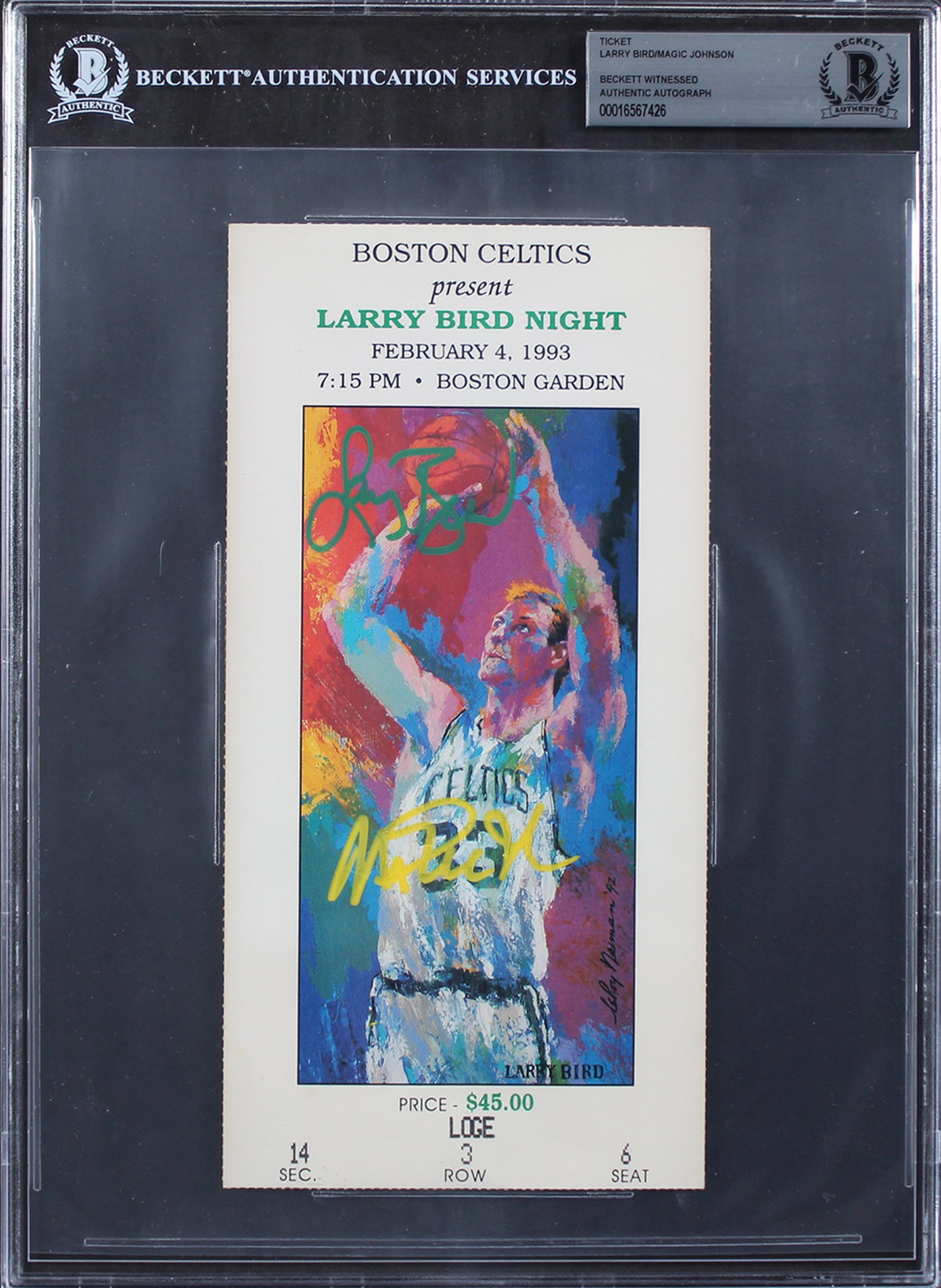 Larry Bird & Magic Johnson Signed 2/4/1993 Larry Bird Night Ticket Stub BAS Slab