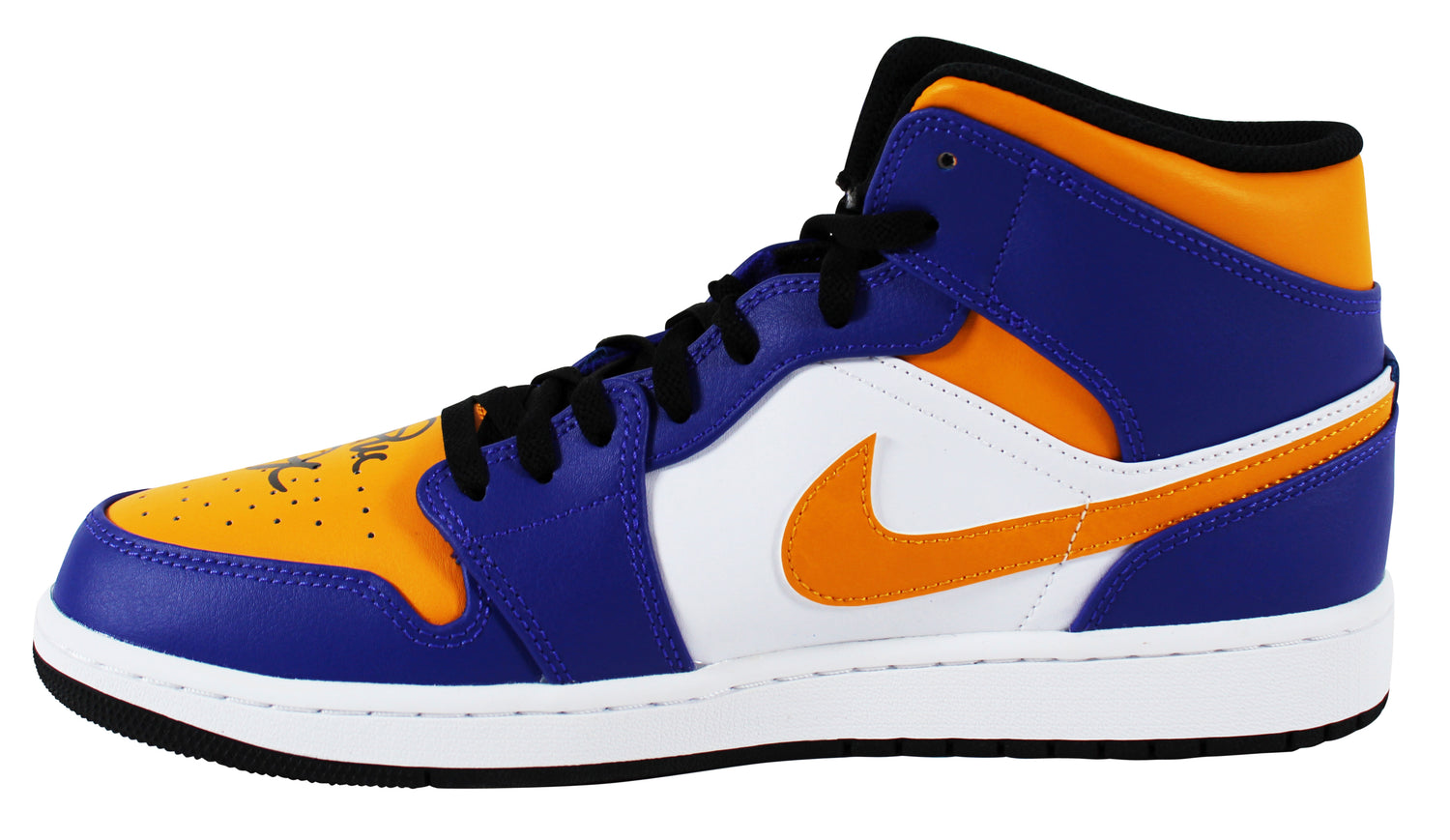 - Collector’s Item: A high-value, autographed Nike Air Jordan 1 Mid 2022 Lakers Shoe, representing the championship legacy of the Los Angeles Lakers.