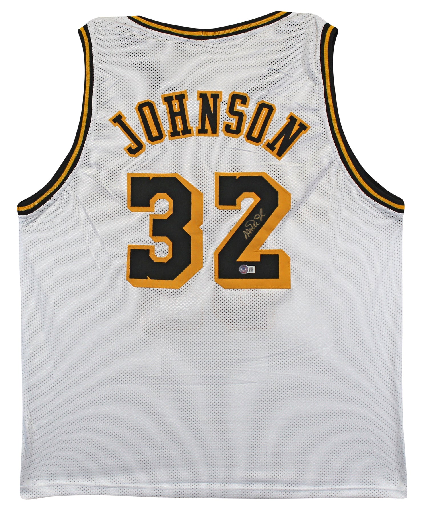Own a piece of basketball history with this Magic Johnson Autographed White Pro Style Jersey w/ Black Numbers—a must-have for Los Angeles Lakers fans and memorabilia collectors. This 100% authentic jersey comes with certification from Beckett Authentication Services (BAS), ensuring the signature's legitimacy.