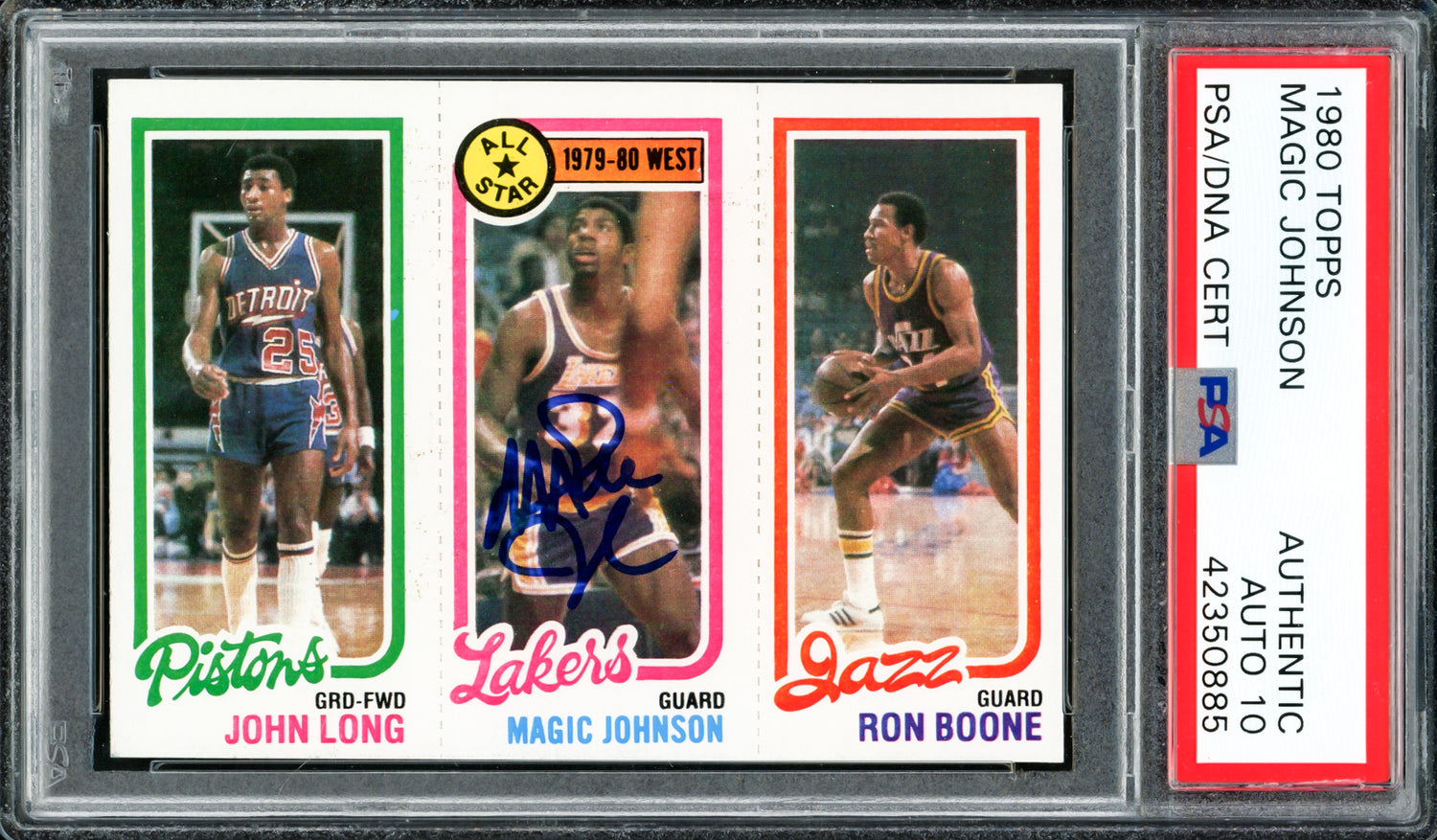 Magic Johnson Autographed 1980 Topps Rookie Card #18 Los Angeles Lakers Auto Grade Gem Mint 10 PSA/DNA #42350885