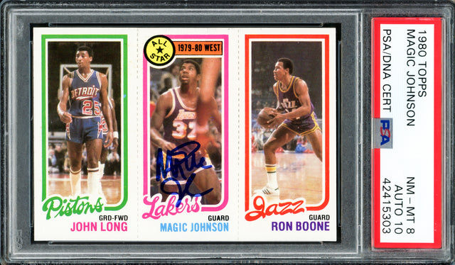 Magic Johnson Autographed 1980 Topps Rookie Card #18 Los Angeles Lakers PSA 8 Auto Grade Gem Mint 10 PSA/DNA #42415303