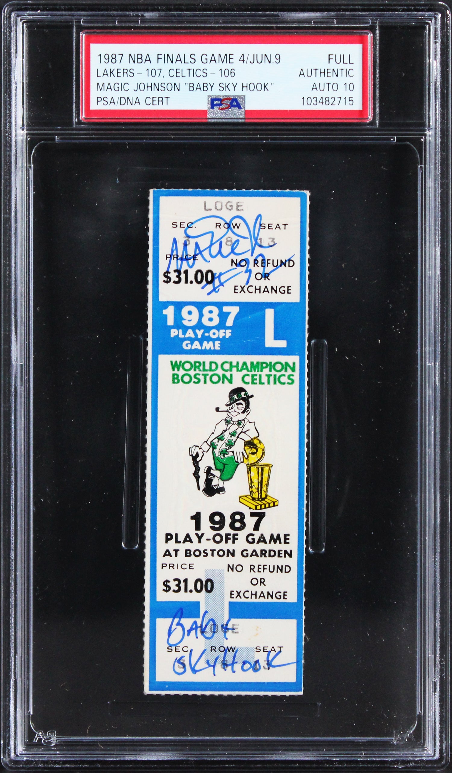 Magic Johnson Signed 1987 NBA Finals Gm 4 Full Ticket Stub Auto 10! PSA/DNA Slab