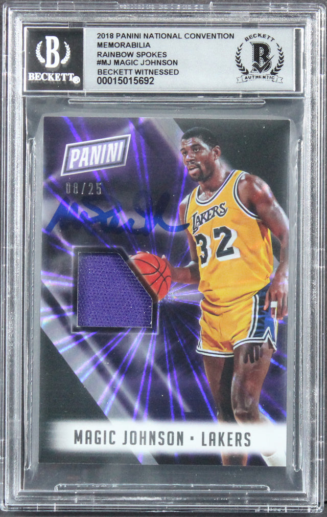Magic Johnson Signed 2018 Panini Rainbow Spokes #MJ #08/25 Card Auto 10 BAS Slab is backordered and will ship as soon as it is back in stock.