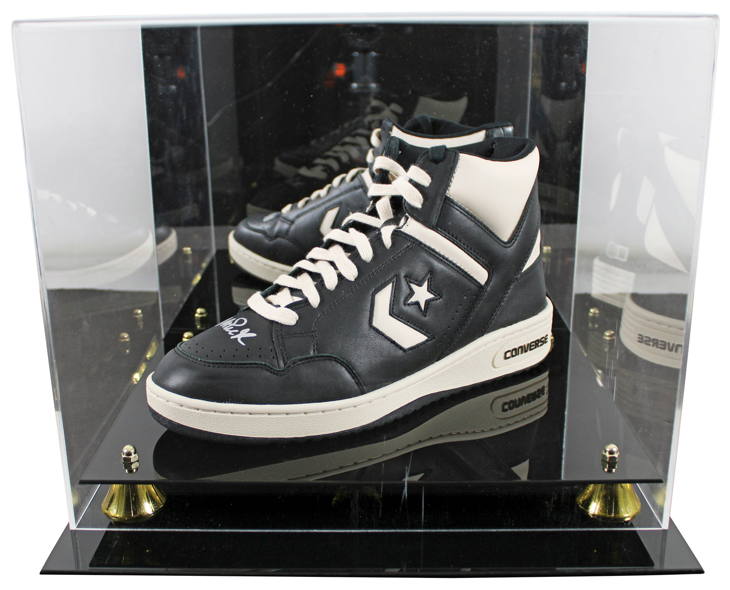 Own a piece of basketball history with this autographed Left Black & White Converse Weapon Shoe, personally signed by Magic Johnson of the Los Angeles Lakers. This iconic sneaker, a must-have for any serious collector, comes in a UV-mirrored back acrylic display case, perfect for showcasing this legendary artifact.