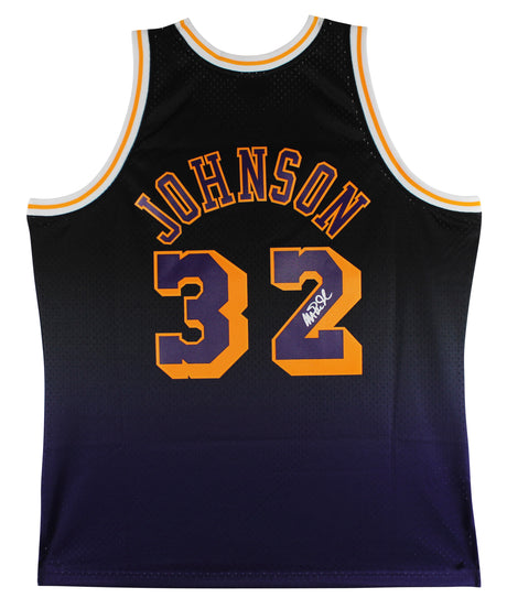 Lakers Magic Johnson Signed Purple Two-Tone M&N 84-85 HWC Swingman Jersey BAS W