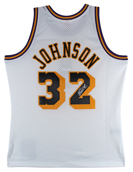 Lakers Magic Johnson Signed White M&N 1984-85 HWC Swingman Jersey BAS Witnessed