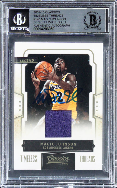 Magic Johnson Signed 2009 Classics Timeless Threads #140 Card Auto 10! BAS Slab
