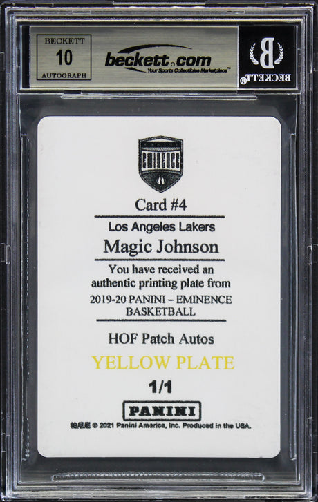 Magic Johnson Signed 2019 Panini Eminence Plates #4 Card Auto 10! BAS Slabbed
