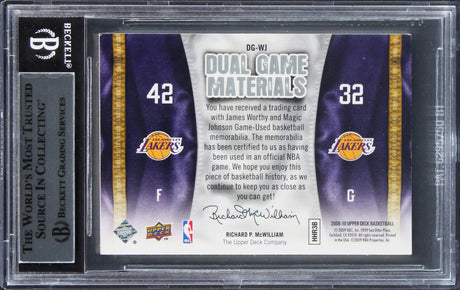 Magic Johnson & James Worthy Signed 2009 UD Game Mat DGWJ Card Auto 10 BAS Slab