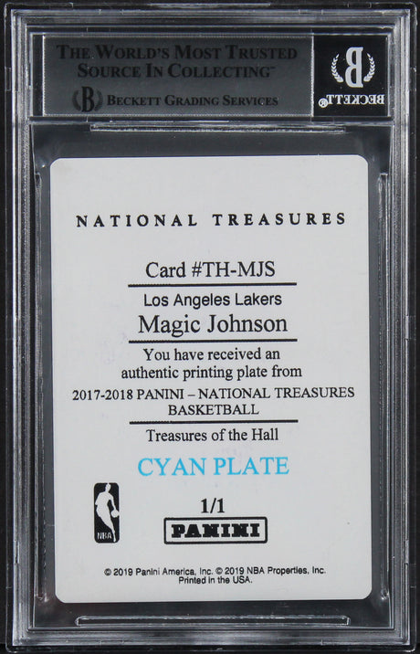 Magic Johnson Signed 2017 Panini National Treasures PP Cyan #17 Card BAS Slabbed