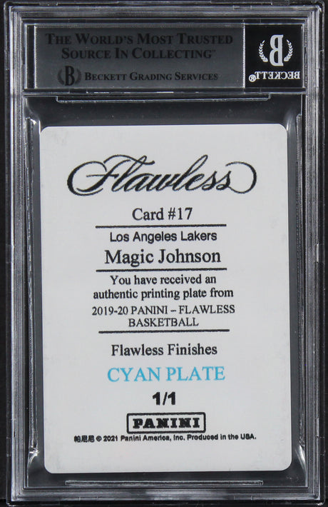Lakers Magic Johnson Signed 2019 Panini Flawless PP Cyan #17 Card BAS Slabbed
