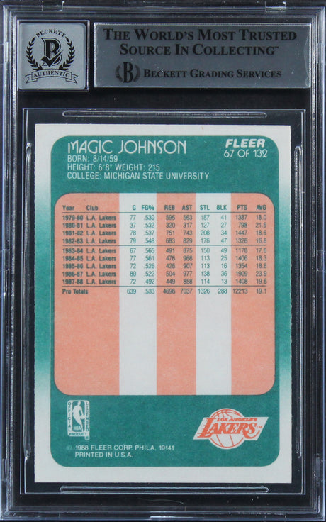 Lakers Magic Johnson Authentic Signed 1988 Fleer #67 Card Auto 10! BAS Slabbed