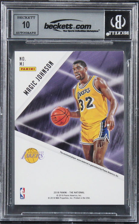 Magic Johnson Signed 2018 Panini Nat Memorabilia #MJ Card Auto 10! BAS Slab 1