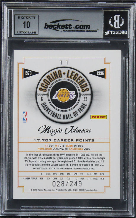 Magic Johnson Signed 2009 HOF Scoring Legends #11 #28/249 Card Auto 10! BAS Slab
